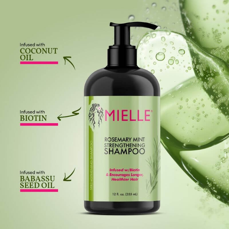 Mielle’s Rosemary Mint Strengthening Shampoo was developed to gently cleanse your hair while providing key nutrients. With hair strengthening biotin and certified organic ingredients such as coconut and babassu seed oil, you can bring weak or brittle hair back from the brink. Not only does this strengthening shampoo feels and smells great, but it also provides intense moisture for all hair types along with unrivaled slip. A little goes a long way with this hair strengthening shampoo, which works great in concert with our Rosemary Mint Strengthening Hair Masque!